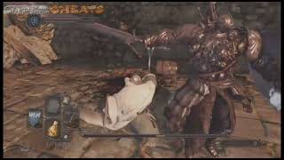 There are ballistas here that can fatally wound him and allow you for a quick kill but lining it up and timing your fire can be challenging, not to mention that the ballistas can be destroyed. Your best hope is to evade and attack as soon as his combos stop. When you have a stronger weapon and higher stats, you should be able to defeat him and survive his attacks.