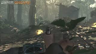 When you've found your team, kill the enemies in the distance and continue by wading through the stream. You'll have to wait a bit when you encounter several enemies up ahead. Still further down the stream you'll have to quickly hide behind the waterfall to your left and let the group of soldiers pass.