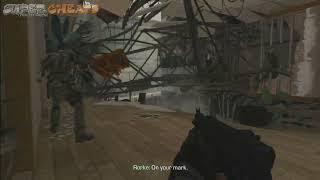 Hug the right side of the street when you exit the house with Hesh and jump over the car, then enter the house. You can find the intel laptop laying on the floor straight ahead. Be sure to quickly collect it ('upload the data') since you'll have to get moving.